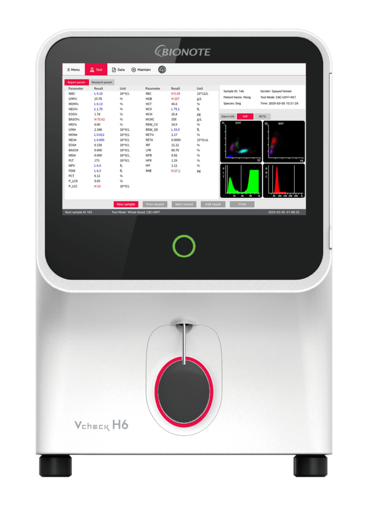 Vcheck H6 — это сочетание передовых технологий и интуитивного интерфейса, которое делает сложные гематологические исследования быстрыми, надёжными и простыми в ежедневной ветеринарной практике.