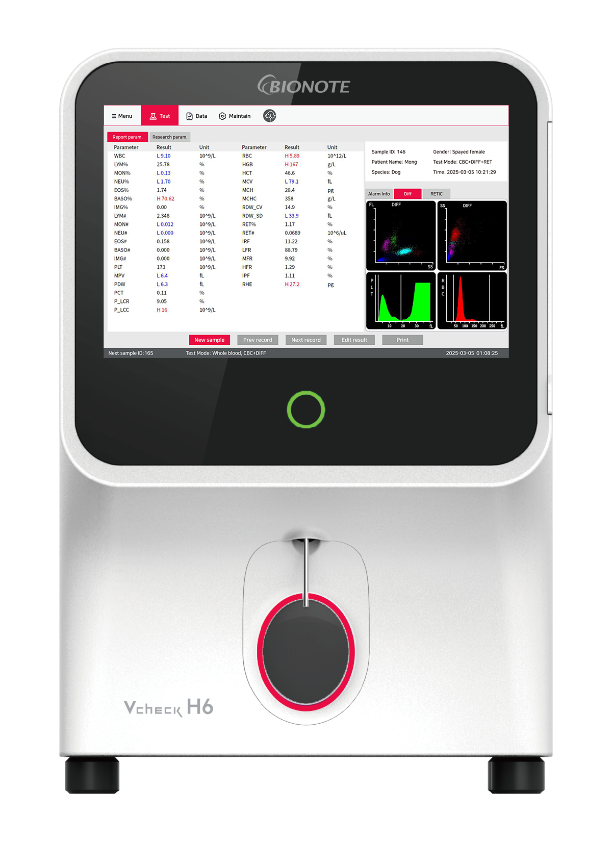 Vcheck H6 — высокоточный 6-diff гематологический анализатор, определяющий 7 параметров ретикулоцитов. Это современный гематологический анализатор, обеспечивающий комплексное исследование крови животных с высокой воспроизводимостью данных.