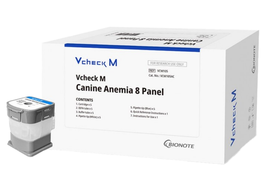 Кат №.VCM105ACCanine Anemia 8 Panel для Vcheck M10, 5 тестов в набореНабор реагентов Vcheck M Canine Anemia 8 Panel представляет собой мультиплексный тест ПЦР в реальном времени, предназначенный для использования с прибором Vcheck M10. Набор предназначен для качественного определения нуклеиновых кислот бактерий Ehrlichia spp., Hepatozoon spp., Hemoplasma, Anaplasma spp., Rickettsia rikettsii, Babesia spp., Borrelia spp., Leptospira spp.(8 целевых патогенов) в цельной крови (ЭДТА) собак.